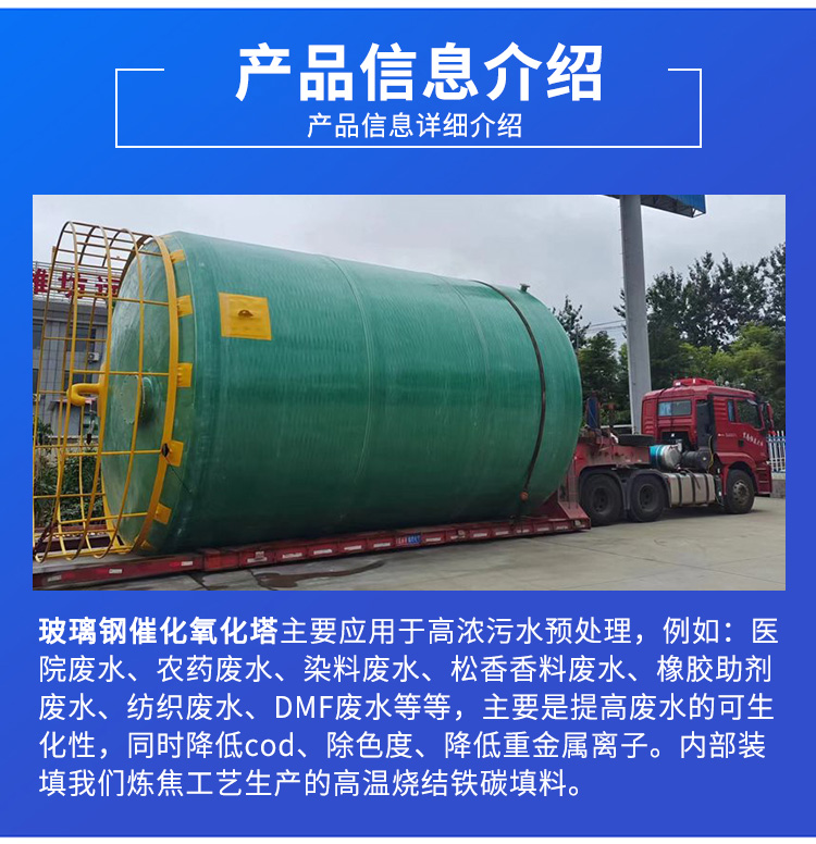 催化氧化塔,也稱為臭氧反應(yīng)器、臭氧混合塔、臭氧投加裝置等,是實(shí)現(xiàn)臭氧高級(jí)氧化反應(yīng)的關(guān)鍵裝置。目前傳統(tǒng)裝置中,均主要采用曝氣管、曝氣頭、汽水混合器等設(shè)備實(shí)現(xiàn)臭氧與廢水的混合。我方應(yīng)用專利的臭氧催化氧化塔,克服現(xiàn)有臭氧氧化技術(shù)的不足,提供一種氣水混合效率高、結(jié)構(gòu)合理、使用安裝方便、適用性廣、耐腐蝕性強(qiáng)的催化氧化塔,可以大大提高臭氧的氧化效率,有效減小運(yùn)行費(fèi)用。利用Fe2+和H2O2之間的鏈反應(yīng)催化生成具有強(qiáng)氧化性的羥基自由基(·OH),可氧化各種有毒和難降解的有機(jī)化合物,針對(duì)高濃度難生物降解廢水處理,可作為生物前處理以改善水質(zhì),提升廢水的可生化性,為后續(xù)的深度處理創(chuàng)造有利條件。特別適用于生物難降解或一般化學(xué)氧化難以奏效的有機(jī)廢水如垃圾滲濾液的深度處理。